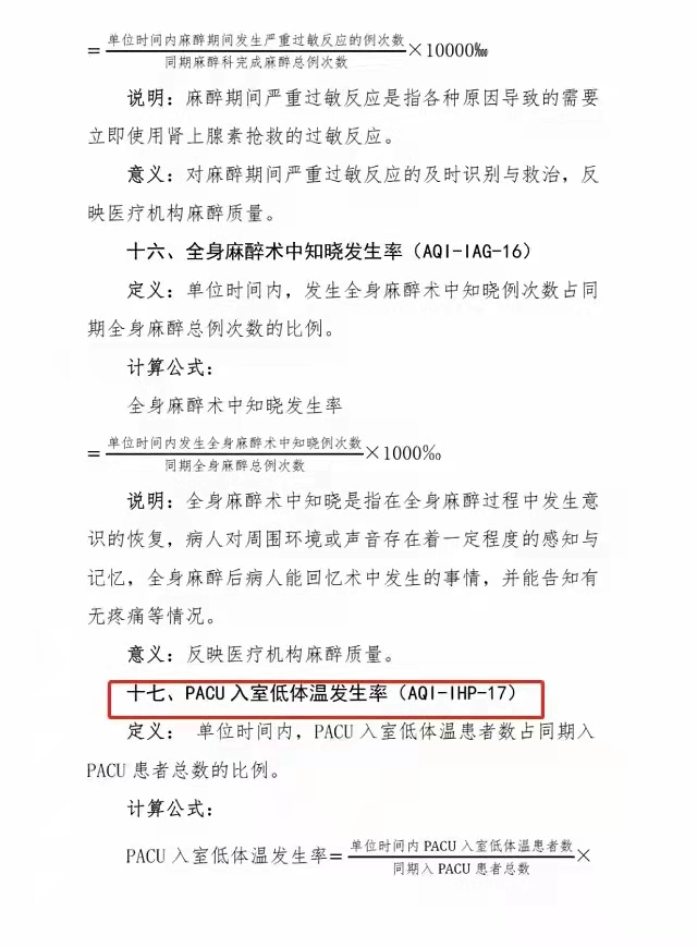 PACU入室低体温发生率(AQI-IHP-17)