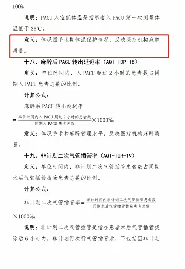 2022年麻醉质量控制指标