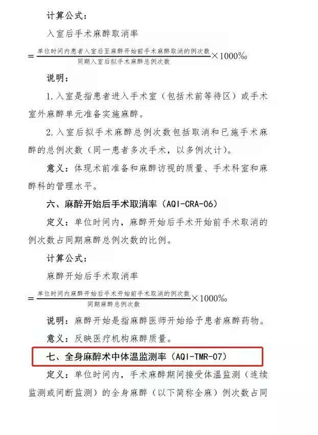 全身麻醉术中体温监测率(AQI-TMR-07)