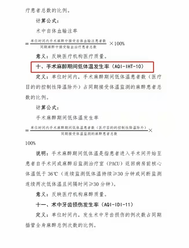 手术麻醉期间低体温发生率(AQI-IHT-10)